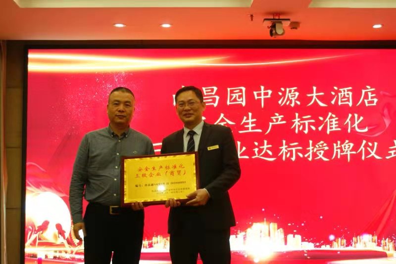 南昌園中源大酒店安全生產(chǎn)標(biāo)準(zhǔn)化三級(jí)企業(yè)達(dá)標(biāo)授牌儀式