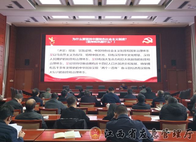 黨的十九屆四中全會閉幕后,省應急管理廳黨組理論學習中心組、各基層黨組織和黨員干部認真學習全會公報、《決定》等重要文件,結合實際研究貫徹落實。為幫助大家加強理解、深入貫徹全會精神,11月28日下午,省應急管理廳組織輔導講座,邀請江西省委黨校李志強教授圍繞學習貫徹黨的十九屆四中全會精神作專題輔導。廳領導、廳機關各處室及廳屬單位共120余人參加。