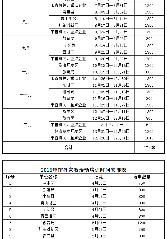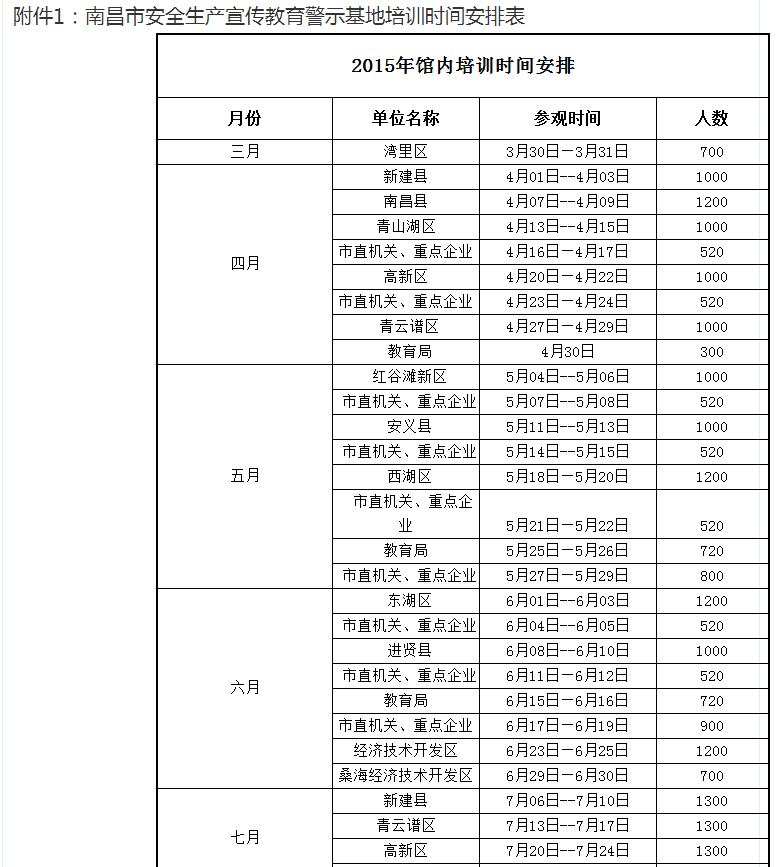 附件1:南昌市安全生產宣傳教育警示基地培訓時間安排表