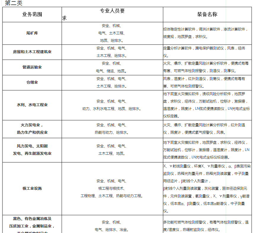 第四條安全評價機(jī)構(gòu)的資質(zhì)分為甲級、乙級兩種,根據(jù)其專業(yè)人員構(gòu)成、技術(shù)條件確定各自的業(yè)務(wù)范圍。安全評價機(jī)構(gòu)業(yè)務(wù)范圍劃分標(biāo)準(zhǔn)見附件1。