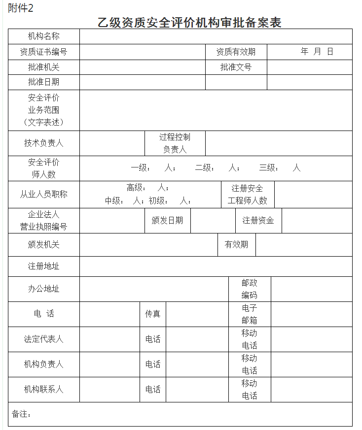 2.乙級資質(zhì)安全評價機(jī)構(gòu)審批備案表
